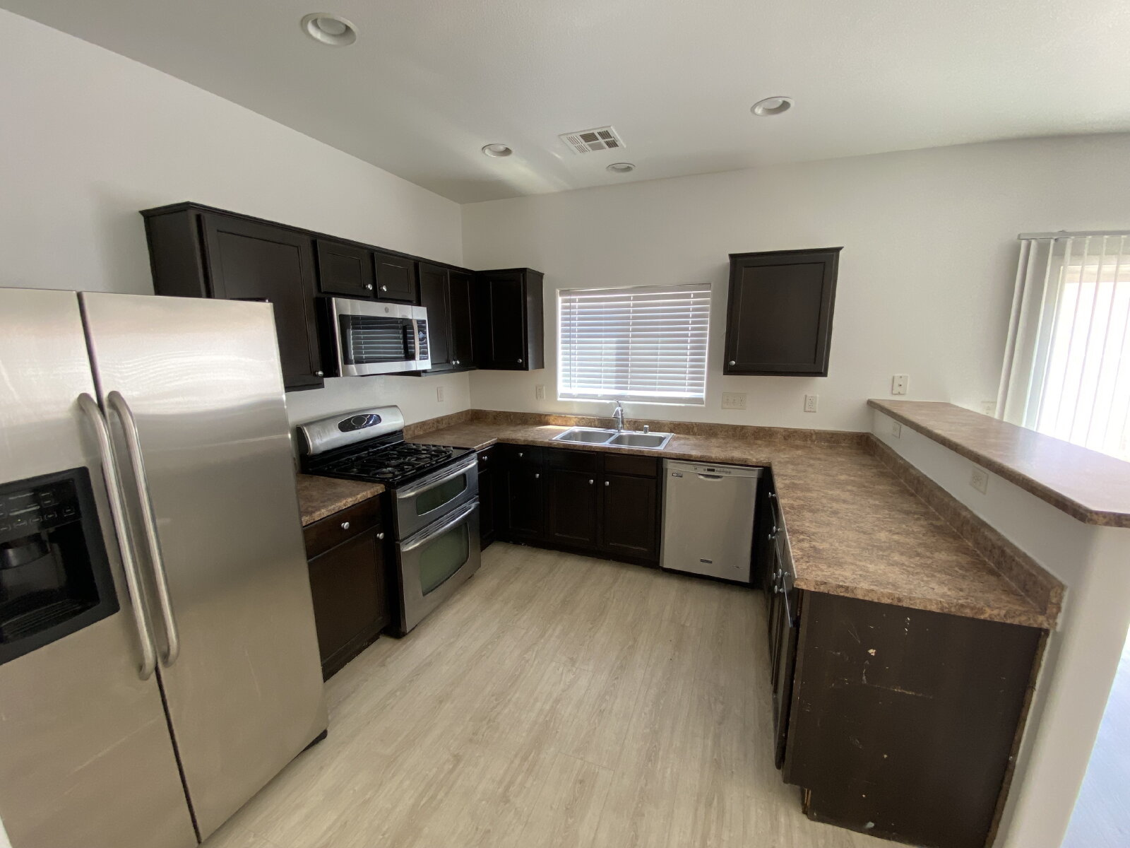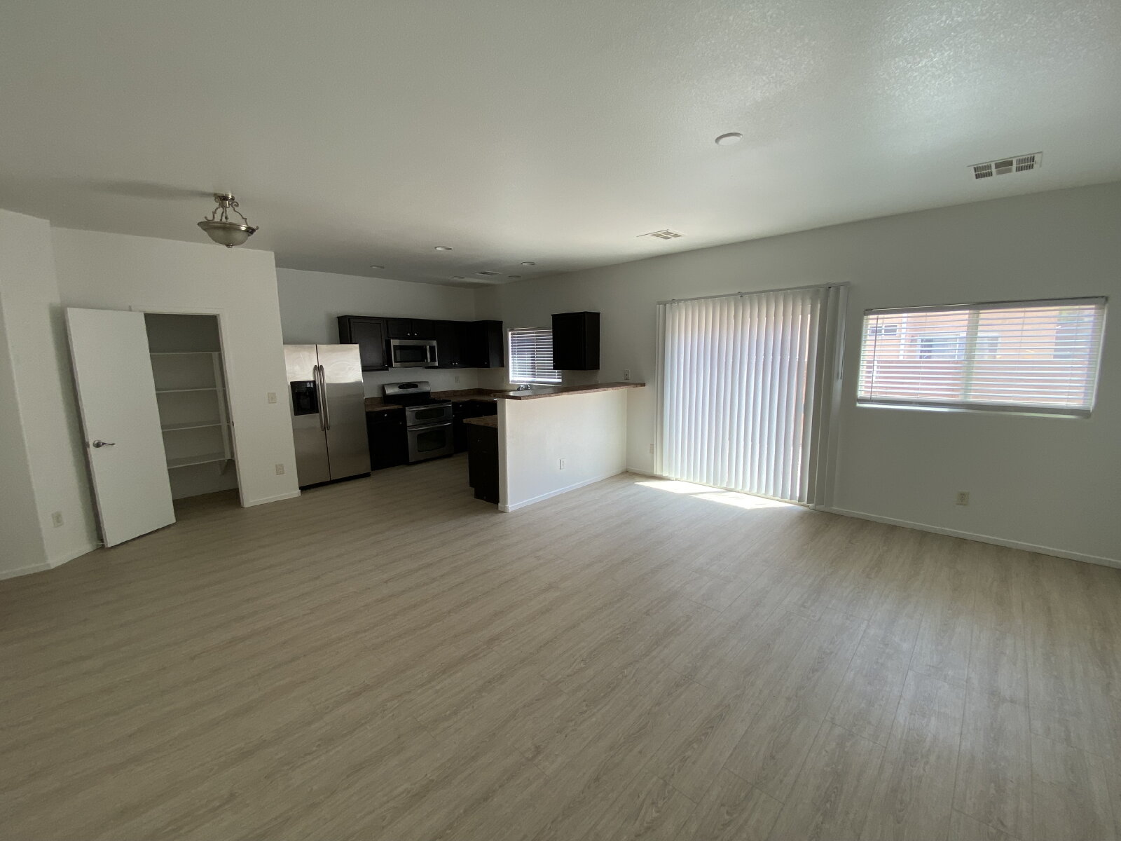 This spacious 1,622 sq ft residence has been recently remodeled in last couple of years with wood-like flooring and fresh paint throughout and offers an inviting and relaxing experience. Two full bathrooms and one half bath, providing ample space for family and visitors alike. The open floor plan seamlessly connects living spaces, creating a welcoming atmosphere perfect for entertaining or unwinding. Large windows throughout fill the home with natural light, enhancing its warm and cheerful ambiance.